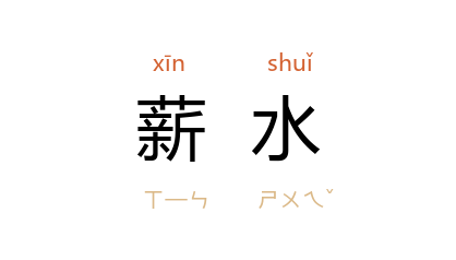 ⒉ 工作的酬劳。 也称为「薪俸」、「薪给」、「薪金」、「薪饷」、「薪资」。