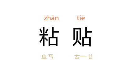 ⒈ 用浆糊、胶水等黏合剂,使纸张或其他东西附著在另一物体上。