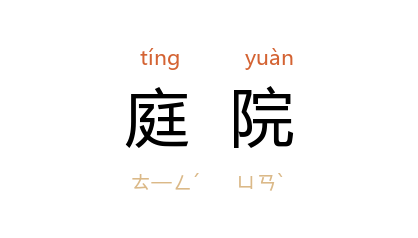 ⒈ 正房前面的宽阔地带;也泛指院子。