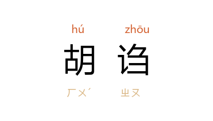 ⒈ 随意乱说、瞎编。元·宫大用也作「胡柴」、「胡嘈」。