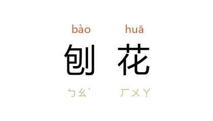 引《相声传统作品选·开粥厂》:“二两胰子,二两鉋花。”从木料上刨削下来的薄片。 徐迟 《牡丹》九:“她把那刨花,从木匠的刨子里飞出来的薄薄的木片,用水泡开。”《新民晚报》1984.3.28:“白杨刨花洁白细腻,剪成牡丹花瓣形象逼真;柳安木刨花深赭粗糙,作牡丹叶片颇为合适。”
