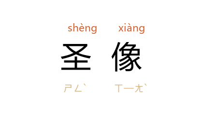 例如:「教堂内四周墙壁上挂著几幅耶稣基督的圣像。」