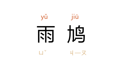 ⒈ 三国吴陆玑《毛诗草木鸟兽虫鱼疏·宛彼鸣鸠》:“鹁鸠,灰色,无绣项,阴则屏逐其匹,晴则呼之。语曰'天将雨,鸠逐妇'是也。”因其将雨时鸣声急,即用以卜晴雨,故呼为“雨鸠”。