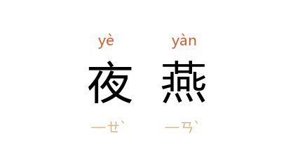 ⒉ 福建省荔枝、龙眼成熟时,有一种趫捷的虫,飞掠樾间,瞬息可尽千百树,称为「夜燕」。也作「夜鷰」。