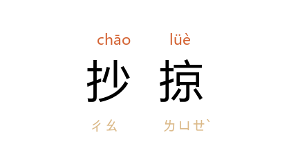 引《五代史平话·唐史·卷上》:「诸军谋作乱,纵火将营寨焚烧,抄掠百姓财物。」