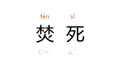 引汉 刘向 《说苑·杂言》:“鲍焦 抱木而立枯, 介子推 登山焚死。”宋 黄庭坚 《清明》诗:“人乞祭餘骄妾妇,士甘焚死不公侯。”
