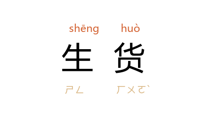 ⒈ 没有经过加工制造的原料。相对于熟货而言。如蚕丝是生货,而绸缎等成品是熟货。