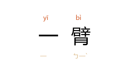 引《山海经·西山外经》:“一臂国在其北,一臂、一目、一鼻孔。”《淮南子·墬形训》:“凡海外三十六国,自西北至西南方有……奇股民、一臂民,三身民。”《北史·薛道衡传》:“今尔之去,朕如继一臂。”《新唐书·薛元超传》:“帝幸东都,留辅太子监国。手敕曰:‘朕留卿,若失一臂。’”《宋史·宗泽传》:“今遽欲去之,非惟一臂之弗瘳,且并与心腹而弃之矣。”