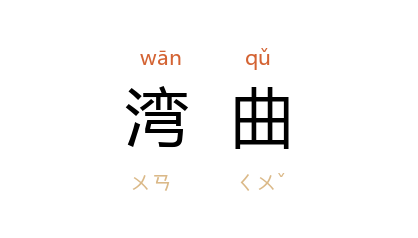 引前蜀 李珣 《渔歌子》词之一:“信浮沉,无管束,钓回乘月归湾曲。”《资治通鉴·后唐庄宗同光元年》:“王彦章 亦撤南城屋材浮 河 而下,各行一岸,每遇湾曲,輒於中流交鬭。”
