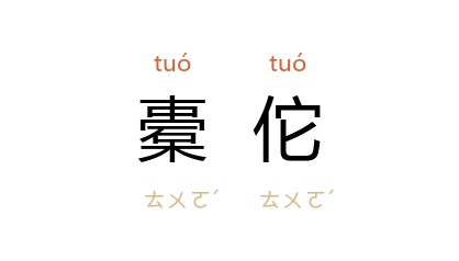 ⒈ 同“橐驼”。亦作“槖佗”。