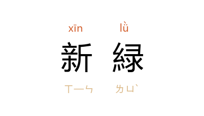 引唐·白居易〈长安早春旅怀〉诗:「风吹新绿草芽坼,雨洒轻黄柳条湿。」宋·陈与义〈纵步至董氏园亭诗〉二首之一:「槐叶层层新绿生,客怀依旧不能平。」
