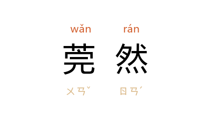 引《后汉书·蔡邕传》:“邕 莞然而笑曰:‘此足以当之矣。’”宋 蔡确 《夏日登车盖亭》诗之三:“睡觉莞然成独笑,数声渔笛在 沧浪。”明 唐顺之 《题东石草堂图赠黄松江》诗:“披图相对一莞然,不觉逍遥数峯里。”