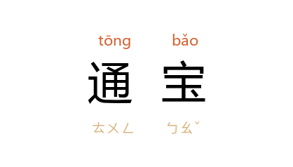 ⒈ 中国旧时钱币的一种名称。起于唐高祖·武德四年(公元621年)铸造的“开元通宝”。以后历代都曾沿用,“通宝”二字前常冠以年号、朝代或国名,铸于币面。如南唐的“唐国通宝”、宋代的“太平通宝”、元代的“至正通宝”、明代的“大明通宝”、清代的“康熙通宝”等。