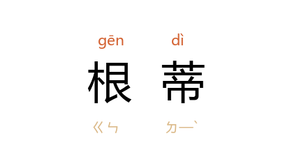 ⒉ 植物的根及瓜果的把儿。比喻事物的根基或基础。