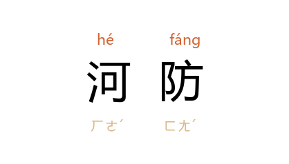 ⒈ 古时 黄河 常泛滥成灾,历朝设置机关防御水患,称为“河防”。