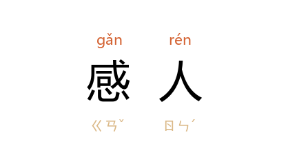德语berühren (V), bewegen (V), erbarmungswürdig (Adj), mitleiderregend (Adj), rührend (Adj)