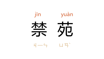 ⒈ 帝王的苑囿、林园。