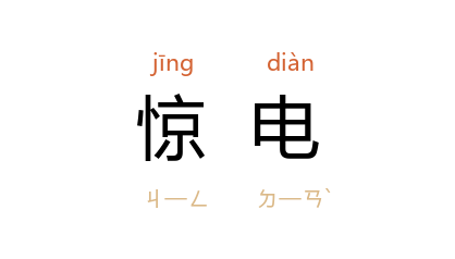 引宋 张耒 《孙彦古画风雨山水歌》:“黑风驱云走不停,惊电疾雨来如倾。”明 何景明 《大梁行》:“一朝运去同衰贱,意气雄豪似惊电。”清 刘大櫆 《村居杪夏》诗:“惊电乍明灭,奇云叠远空。”