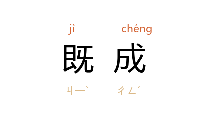 引《诗·小雅·六月》:“维此六月,既成我服。”毛泽东 《统一战线中的独立自主问题》:“有些则造成既成事实再告诉它。”郭沫若 《革命诗人屈原》:“到了这个时候,或早或迟必然的要起来一次革命,便是文字打破既成的定型而向脱去了桎梏的言语急起直追。”