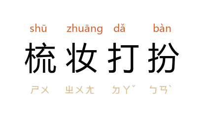 ⒈ 见“梳粧打扮”。亦作“梳妆打扮”。对容颜衣着进行修饰。