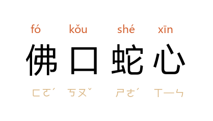 英语words of a Buddha, heart of a snake (idiom); two-faced, malicious and duplicitous