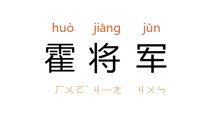 ⒈ 指 西汉 抗击 匈奴 的名将 霍去病。后借指功大位高的武将。