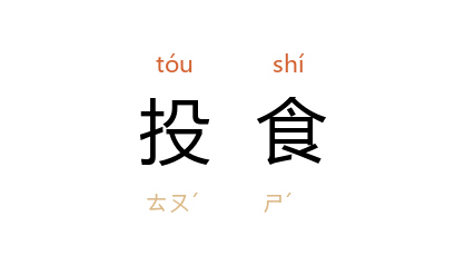 引《三国志·魏志·齐王芳传》“诸葛恪 围 合肥 新城” 裴松之 注引 晋 习凿齿 《汉晋春秋》:“姜维 有重兵而县军应 恪,投食我麦,非深根之寇也。”唐 王建 《荆南赠别李肇著作转韵诗》:“两京二十年,投食公卿间。”