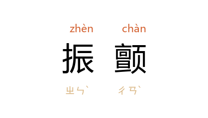 引鲁迅 《野草·颓败线的颤动》:“这颤动点点如鱼鳞,每一鳞都起伏如沸水在烈火上;空中也即刻一同振颤。”洪深 《戏的念词与诗的朗诵》六:“使得声带一开一合地振颤;这种振颤,又使得那在共鸣腔穴中的空气振颤,造成音波而出于口。”
