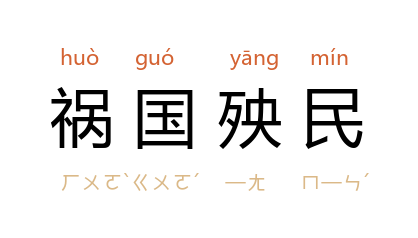 例如:「这些汉奸祸国殃民,无恶不作,令人痛恨。」