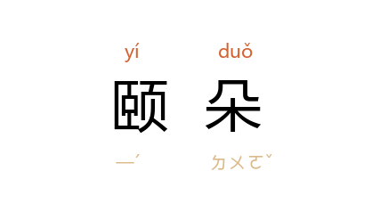引宋 赵与时 《宾退录》卷五:“汪彦章 尝赋长篇:‘……区区於其中,臆决盖不可,伪真吾何知,且用慰颐朶。’”清 袁枚 《随园诗话》卷十五:“鱼门(程鱼门 )《晒书》诗云:‘老饕对长筵,未啖空颐朵。’”
