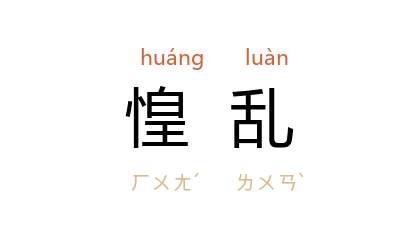 引清 倦圃野老 《庚癸纪略》:“后港 饮马桥 一带,尽贴封条佔据,居民一时惶乱。”艾青 《北方》诗:“只有那结成大队的雁群,惶乱的雁群,击着黑色的翅膀,叫出它们的不安与悲苦。”陆文夫 《献身》:“唐琳 惶乱了,结婚二十一年,她第一次看见 卢一民 掉眼泪。”