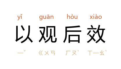 亦作“以观后効”。 《官场现形记》第四八回:“蒋中丞 人尚忠厚,因见两司代为求情,亦就答应暂时留差,以观后効。”