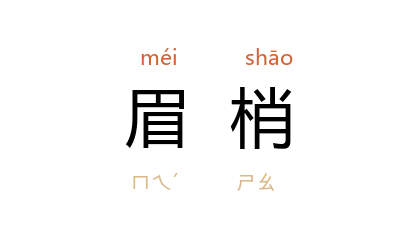 引《红楼梦·第六三回》:「芳官吃的两腮胭脂一般,眉梢眼角越添了许多丰韵。」
