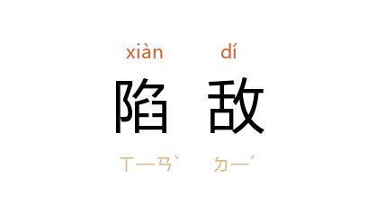引《六韬·战骑》:“凡以骑陷敌,而不能破陈,敌人佯走,以车骑返击我后,此骑之败地也。”《宋史·张令铎传》:“令鐸 性仁恕,尝语人曰:‘我从军三十年,大小四十餘战,多摧坚陷敌,未尝妄杀一人。’”