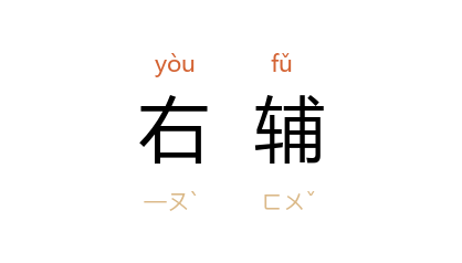 ⒉ 右,汉代三辅之一。汉武帝时以京兆尹,左冯翊、右扶风为三辅。因地在京兆尹之西,故称为「右辅」。今在陕西凤翔。