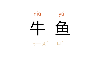引晋 张华 《博物志》卷十:“东海有牛鱼,其形如牛,引其皮悬之,潮水至则毛起,潮退则毛伏。”宋 孔平仲 《孔氏谈苑·契丹鱼鳔》:“契丹 鸭渌水 牛鱼鰾,製为鱼形,妇人以缀面花。”明 李时珍 《本草纲目·鳞四·牛鱼》﹝集解﹞引《一统志》:“牛鱼出 女直 混同江。大者长丈餘,重三百斤。无鳞骨,其肉脂相间,食之味长。”清 纪昀 《阅微草堂笔记·姑妄听之一》:“金 重牛鱼,即 瀋阳 鱘鰉鱼,今尚重之。”