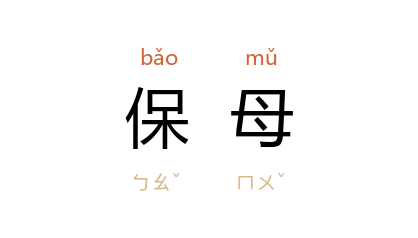 ⒉ 替人保育子女的妇人。也作「保姆」、「媬姆」、「褓母」、「褓姆」。