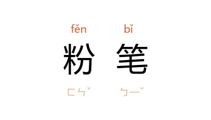 ⒊ 黑板上写字作图所用之物。多用熟石膏粉加水搅拌,灌入模型后凝固而成。一般为白色,若混以颜料,则为各种颜色粉笔。