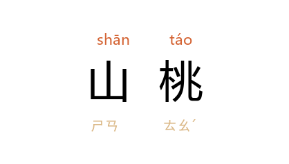 引《尔雅·释木》:“榹桃,山桃。”郭璞 注:“实如桃而小,不解核。”南朝 宋 谢灵运 《酬从弟惠连》诗:“山桃发红萼,野蕨渐紫苞。”宋 王安石 《招叶致远》诗:“山桃野杏两三栽,嫩叶商量细细开。”