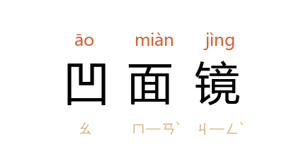 ⒈ 一种反射面内凹的球面镜。能将平行的光反射后聚在镜面前的一点,此点称为「焦点」。常用于使远处的物体成像、或将光源焦聚在焦点上,使其发出的光经反射后变成平行光束。如手电筒、车灯、探照灯等。
