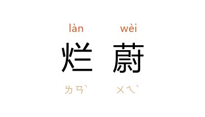 引晋 顾恺之 《筝赋》:“其器也,则端方修直,天隆地平,华文素质,烂蔚波成。君子喜其斌丽,知音伟其含清。”宋 文同 《屯田郎中石君墓志铭》:“今有天子在 汴,除洒洁祓,一布休治,铺张建置,文采烂蔚,輦轂之下,士民恬安。”