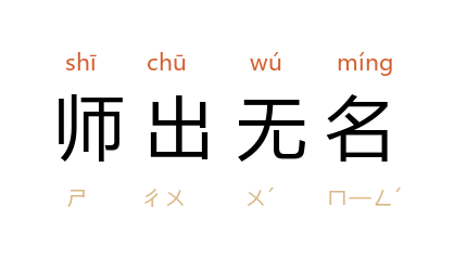 ⒈ 语本指出兵打仗缺乏正当的理由。亦可引申为做事没有正当的理由。南朝梁·裴子野〈宋略泰始三叛论〉:「既而六军献捷,方隅束手,天子欲贾其余威,师出无名,长淮以北,倏忽为戎。」也作「兵出无名」。