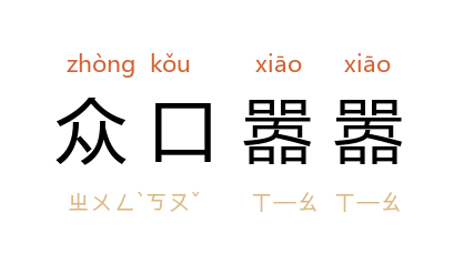 亦作“众口嘵嘵”。 清 黄辅辰 《戴经堂日钞》:“入署后,未刻,至内阁。大学士、九卿会议添兵筹餉,众口嘵嘵,茫无一策。”