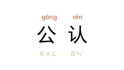 例如:「他是全校公认的好老师。」