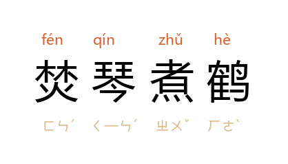 ⒈ 把琴当柴烧,烹煮鹤来吃。比喻极杀风景的事。宋·洪适〈满江红·春色怱怱〉词:「吹竹弹丝谁不爱,焚琴煮鹤人何肯。」也作「煮鹤焚琴」、「煮鹤烧琴」。