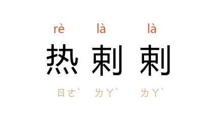 例如:「上课被老师打两下手心,到现在还感觉热剌剌的。」