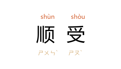 引《孟子·尽心上》:“莫非命也,顺受其正;是故知命者不立乎巖墙之下。”宋 周密 《齐东野语·许公言》:“君手有直纹,未可量,但早年亦囏困,宜顺受之,寿可至六十九。”清 蒲松龄 《聊斋志异·邵女》:“但女奉侍谨,无可蹈瑕;或薄施訶谴,女惟顺受。”巴金 《家》三:“这张美丽的脸上总是带着那样的表情:顺受的,毫不抱怨,毫不诉苦的。”