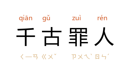例如:「秦桧害死岳飞,成为千古罪人。」