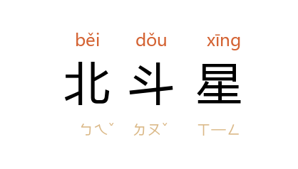 ⒈ 在北天排列成斗形的七颗亮星,属大熊星座。其名称为:一天枢、二天璇(或谓“天璿”)、三天玑、四天权、五玉衡、六开阳、七摇光(或谓“瑶光”)。一至四为斗魁,又名“璇玑”;五至七为斗柄,又名“玉衡”。把天璇和天枢连接起来,延长约五倍距离,即可找到现在的北极星。参阅《星经·北斗》、《史记·天官书》、《晋书·天文志上》。
