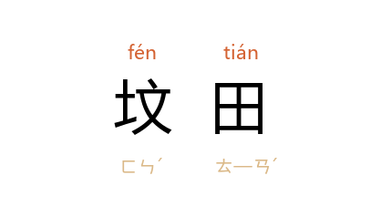 引茅盾 《手的故事》:“八少爷,又下乡了么?坟田查得差不多了罢?”洪深 《香稻米》第二幕:“什么债欠得多,利钱背得重,种的不过是三亩半人家的坟田,要自己完钱粮,还要每亩出四块钱的佃租!”